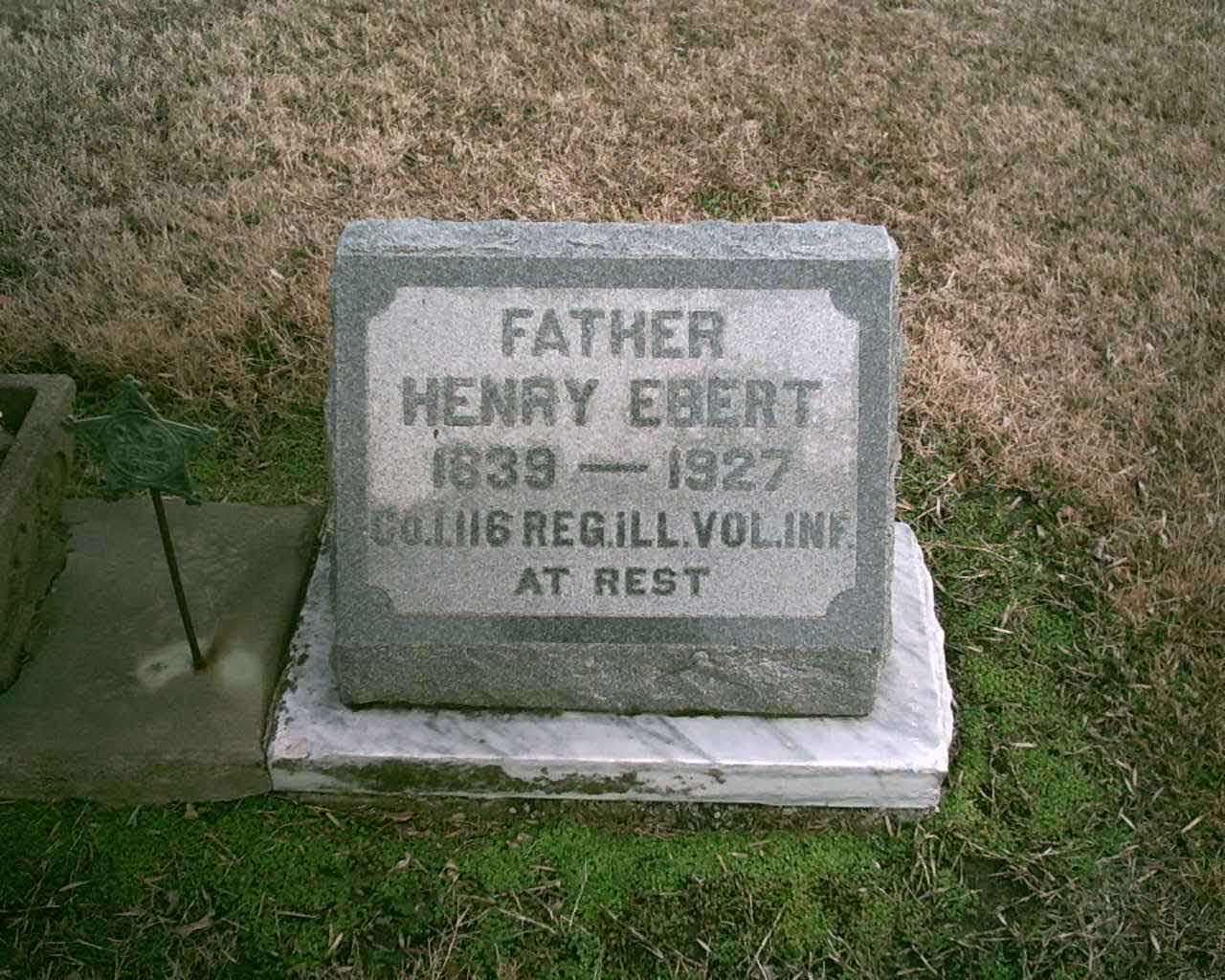 Henry Adolph Moritz Ebert was born in Germany, in the Kingdom of Prussia, January 28, 1839 and died in Chanute, Kansas on January 19, 1927. At the age of 11 he came to this country with his parents, who settled in Cincinnati. In 1857 the family moved to Decatur, Illinois.